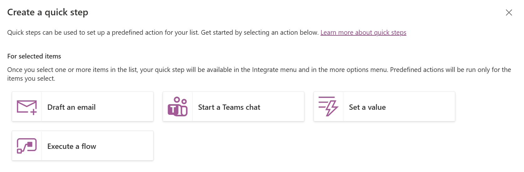 Available Quick Step Actions in Lists