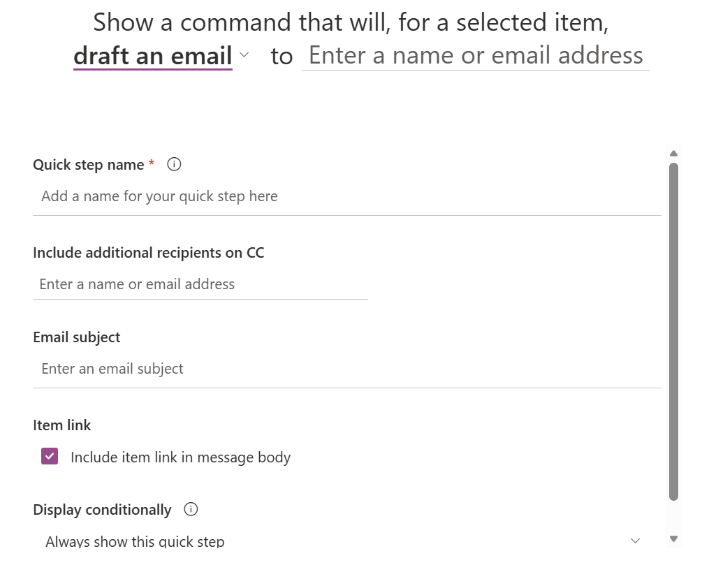 Creates a new Outlook draft pre‑filled with the link to the item perfect for follow‑ups, approvals or stakeholder updates.